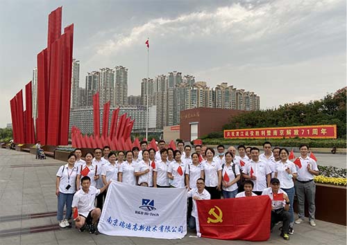 2020年9月29日下午,为庆祝祖国71周年华诞,瑞迪高新公司党支部组织了“不忘初心,健步前行”庆祝中国人民共和国成立71周年活动,全体党员,申请入党积极分子,及各职能部门员工参加了此次活动。 全体人员统一着装,从大桥公园集合,首先参观了南京长江大桥纪念馆,在支部书记祝烨然的带领下全体党员重温入党誓词。作为新中国第一座自主设计建造的双层公铁两用桥,南京长江大桥承载了几代人的情怀。南京长江大桥纪念馆是首座以展示大桥历史背景及文物资料而专门修建的,由大桥南桥头堡改造而成,主要由“历史意义”、“伟大精神”、“记忆对话”、“科艺价值”、“再励辉煌”五个部分组成,还原了大桥的设计、建设和维护过程,展现了大桥在当年物资匮乏时期的建设施工难度,以及大桥建设者们跳出资源禁锢,发挥中国智慧和弘扬民族精神的史诗与成就。